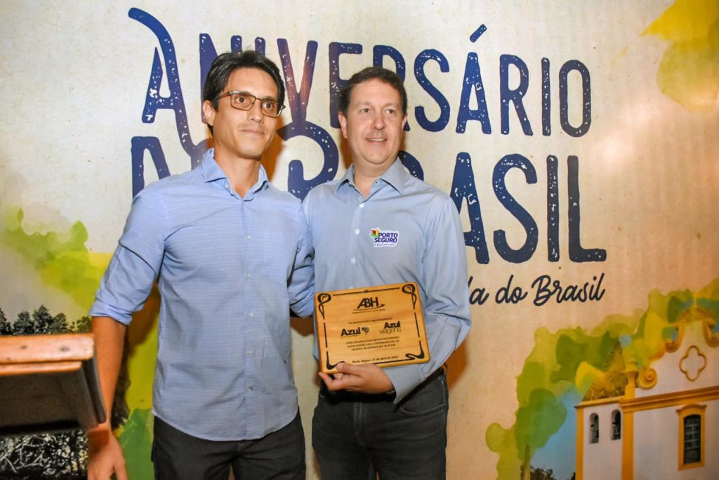 Essa honraria é entregue à personalidades com atuação histórica, econômica ou social relevante para Porto Seguro, a Terra Mãe do Brasil, do passado e do presente. A Azul Linhas Aéreas tem, hoje, 26 voos semanais vindos de várias partes do país, 16 voos dedicados aos sábados e domingos e irá complementar com mais quatro voos dedicados no mês de julho, para a alta temporada. O diretor da Azul, Daniel Bicudo, agradeceu por receber a Comenda “22 de Abril – Aniversário do Brasil” e destacou a importância do destino Porto Seguro para a Azul Linhas aéreas e Azul Viagens. “Essa homenagem só se tornou possível graças à união de todos: companhias aéreas, operadores, gestão pública, agentes, hoteleiros e a ABIH. – Comentou Daniel.