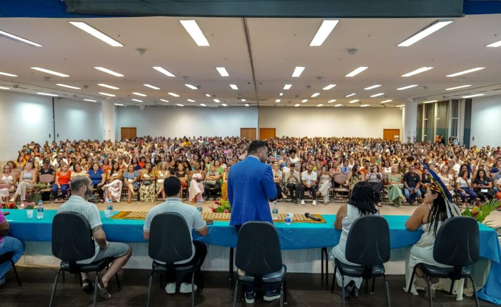 A abertura do evento contou com a execução do Hino Nacional, interpretado pela cantora Larissa Rodrigues. Em seguida, o secretário Luiz Leal destacou os avanços e desafios da educação no município, que conta com 110 escolas, mais de 3 mil servidores, 3.700 professores e mais de 33 mil alunos. Ele celebrou a evolução do índice de Desenvolvimento da Educação Básica (IDEB) e prêmios recebidos pela gestão, como o Selo Ouro em Alfabetização, concedido pelo Ministério da Educação a apenas 13 municípios do país. “Temos que ter orgulho de trabalhar nessa rede. E é por meio de vocês que vamos alcançar resultados ainda não imaginados para a nossa cidade”, afirmou Luiz Leal.