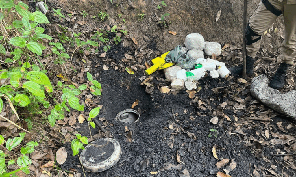 Uma operação conjunta deflagrada na manhã deste sábado (26/07), em Eunápolis, resultou na apreensão de mais de 26 quilos de drogas em uma área de mata no bairro Alecrim II, na zona norte da cidade. A ação, denominada Operação Navalha, teve como foco a desarticulação de organizações criminosas envolvidas com o tráfico de entorpecentes e outros crimes. As substâncias ilícitas foram encontradas enterradas em tonéis plásticos e a localização só foi possível com o auxílio de cães farejadores. No total, a polícia apreendeu aproximadamente: