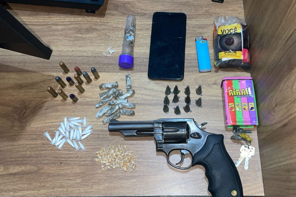 Com o indivíduo detido, os policiais encontraram um revólver calibre .38 com 11 munições intactas. Além da arma, foram apreendidas 12 papelotes de maconha, 26 eppendorfs pequenos de cocaína, 11 eppendorfs grandes de cocaína, 85 pedras de crack e um aparelho celular Motorola Modelo E7 de cor cinza. O suspeito recebeu voz de prisão em flagrante e foi imediatamente conduzido, juntamente com todo o material apreendido, para a Delegacia Territorial de Porto Seguro. As autoridades competentes darão prosseguimento às investigações e medidas cabíveis.