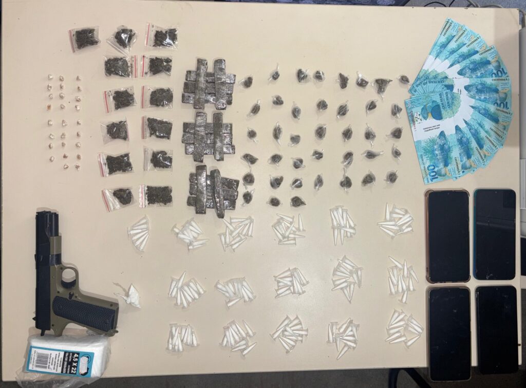 Durante a ação, foram apreendidos 146 pinos de cocaína, 25 pedras de crack, mais de 180 gramas de maconha, sete celulares e um simulacro de arma de fogo. Além dos entorpecentes, a polícia encontrou 45 cédulas falsas de R$ 100, totalizando R$ 4.500. Duas mulheres investigadas foram levadas à delegacia e confessaram participação no esquema, alegando terem sido coagidas pelo líder da organização. Um adolescente também foi apreendido e admitiu envolvimento com o tráfico, sendo posteriormente entregue a seu responsável legal.