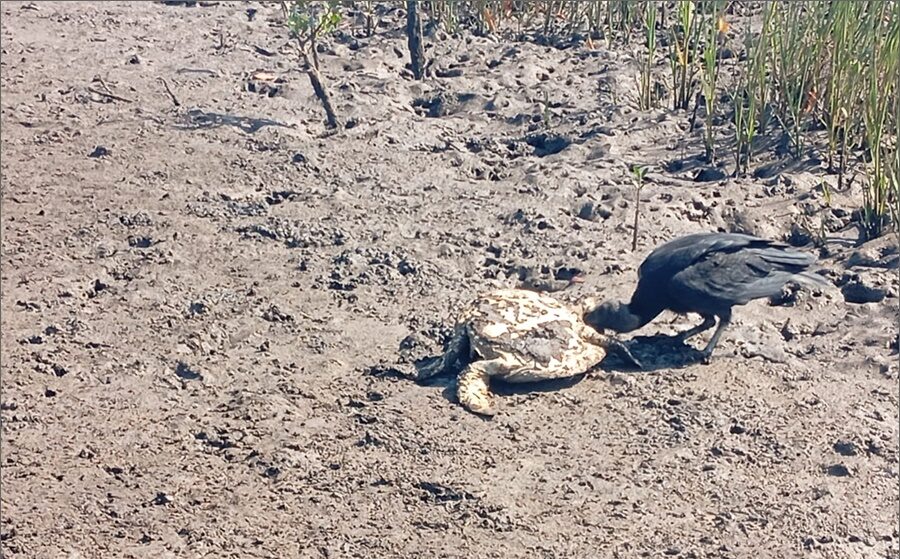Um grave desastre ambiental atingiu o distrito de Mogiquicaba, em Belmonte, neste final de semana, deixando um rastro de destruição na fauna e flora local. Moradores registraram a morte de tartarugas e a contaminação de manguezais por um produto químico ainda não identificado, além de praias cobertas por resíduos estranhos, crostas pretas e um odor insuportável.