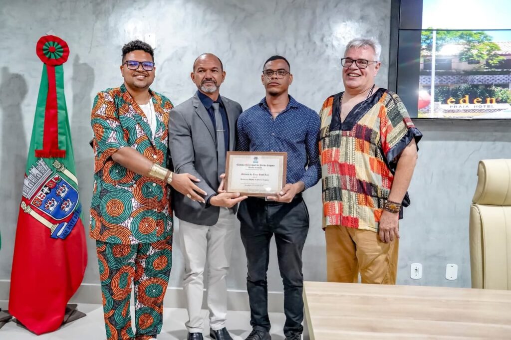 Durante a cerimônia, que teve como tema “Caminhos para um futuro antirracista”, Moisés recebeu o Título de Cidadão Portossegurense, uma honraria proposta pela Superintendência de Igualdade Racial. Além disso, o professor também será agraciado no próximo dia (27/11) com o Título de Honra da OAB (Ordem dos Advogados do Brasil), simbolizando o respeito institucional por seu trabalho na garantia de direitos e justiça social. Para o educador, o reconhecimento vai além do mérito individual. “Essas homenagens não são só minhas. Elas pertencem a todos que acreditam que podemos transformar nossa realidade, mesmo quando começamos com tão pouco. Pertencem a cada jovem negro que sonha e luta por seu lugar no mundo”, afirmou Moisés, emocionado.