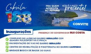 Governador Rui Costa estará com o Prefeito Agnelo...